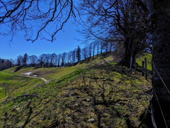 Über bewaldete Höhenzüge führt die interessante Wanderung zur aussichtsreichen Alp Ahorn (1140 m). Grossartiger Blick auf die Eggen und Chrächen des Napfgebietes und das luzernische Hügelland. Rundsicht über das Mittelland, die hohen Gipfel der Alpen und den Jura. Die „Hagstelli“. Dicht beieinander stehende Bäume, der „Hag“ (Hecke), sollten Mensch und Tier, unterwegs mit guten oder eher weniger guten Absichten, „gestellt“ (zum Halten gebracht) werden. Und das seit 400 Jahren.